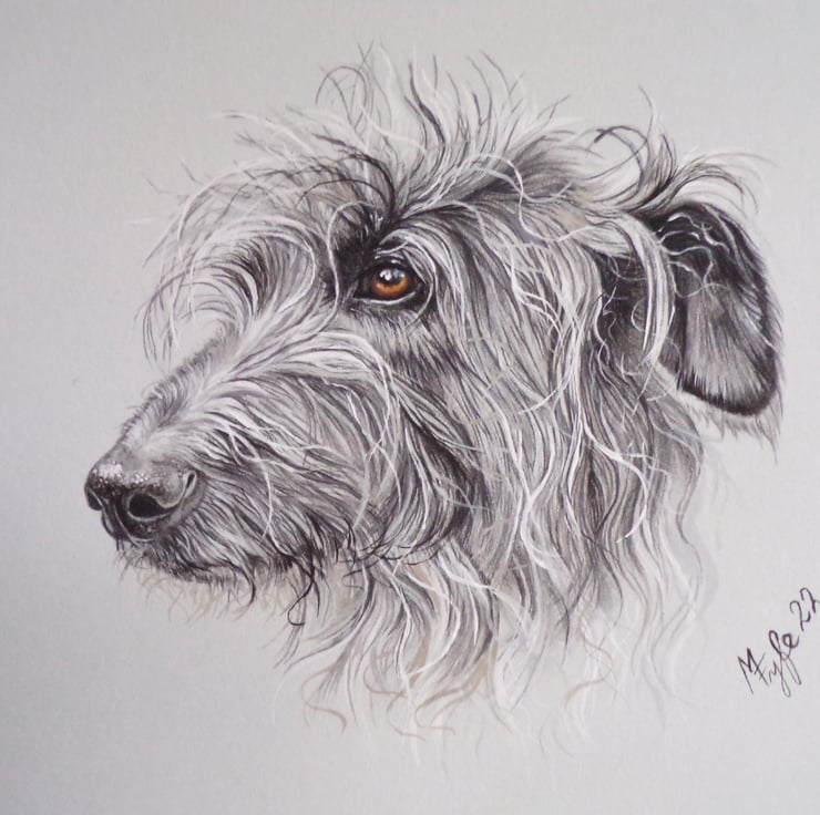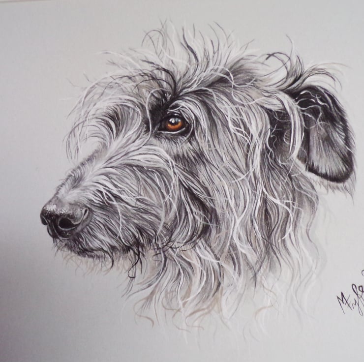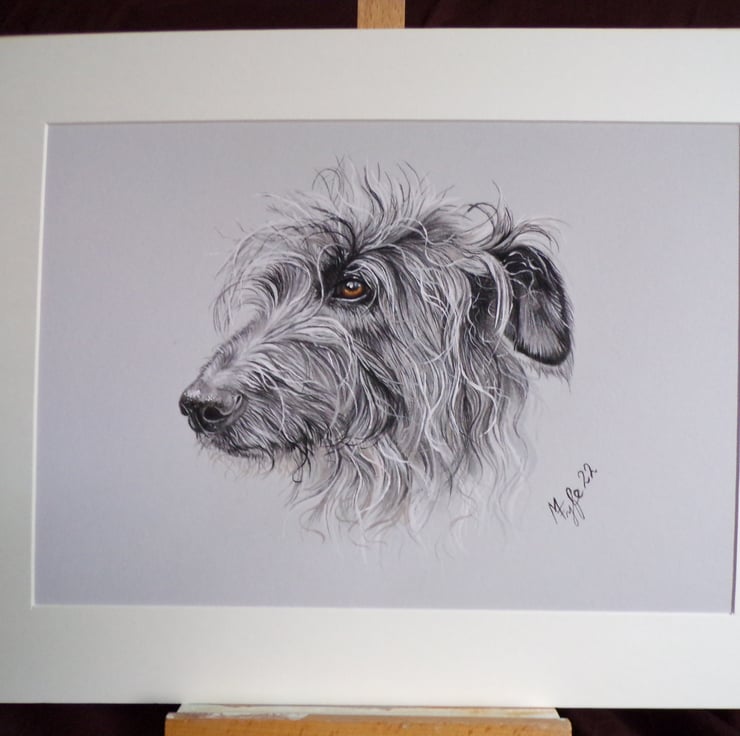 Giclee cotton smooth 300 gsm paper high quality print of lurcher dog (original done in watercolour pencils)