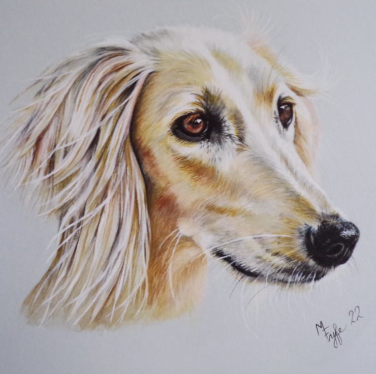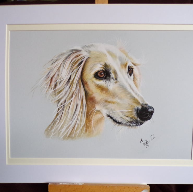 Giclee cotton smooth 300 gsm paper high quality print of saluki dog (original done in watercolour pencils)
