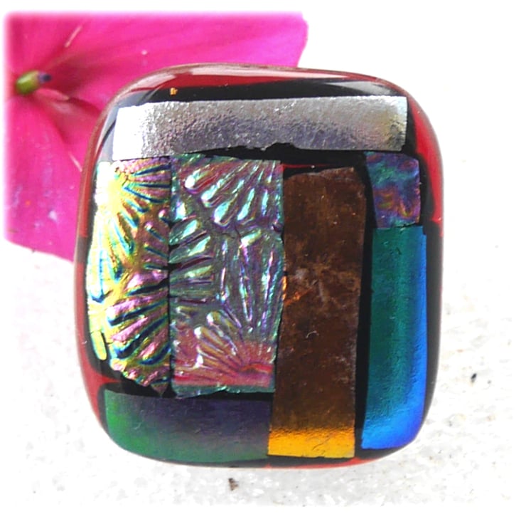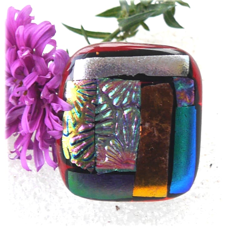 Patchwork  Brooch 099 Dichroic Fused Glass Handmade