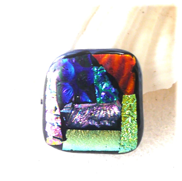 The dichroic glass cabochon for this brooch was handmade, by me, with love.