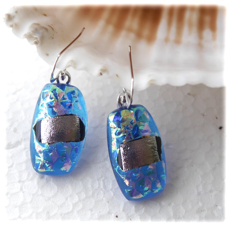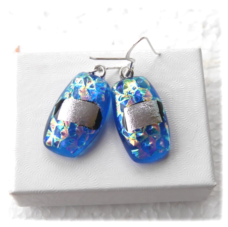 Luxury Dichroic Earrings Fused Glass L004 Sterling Silver hooks