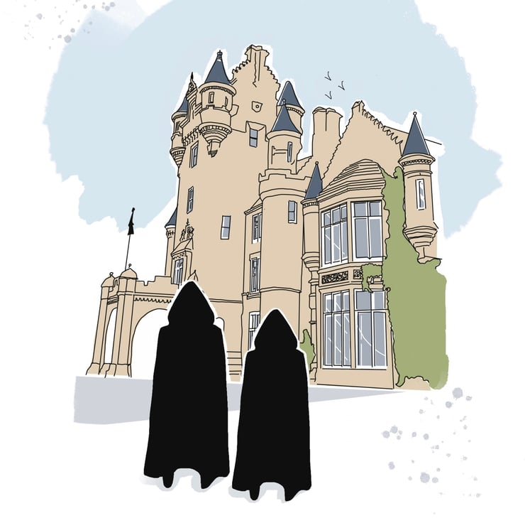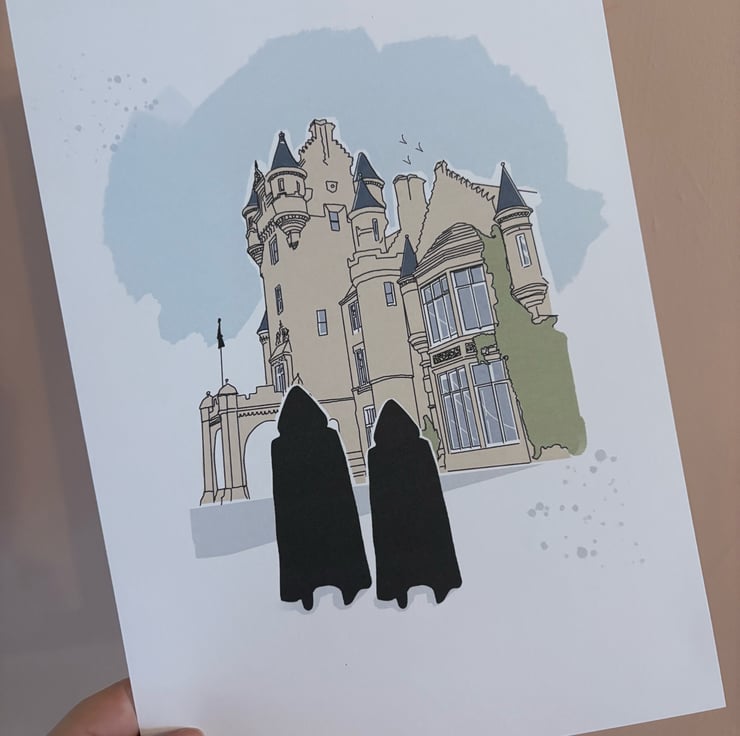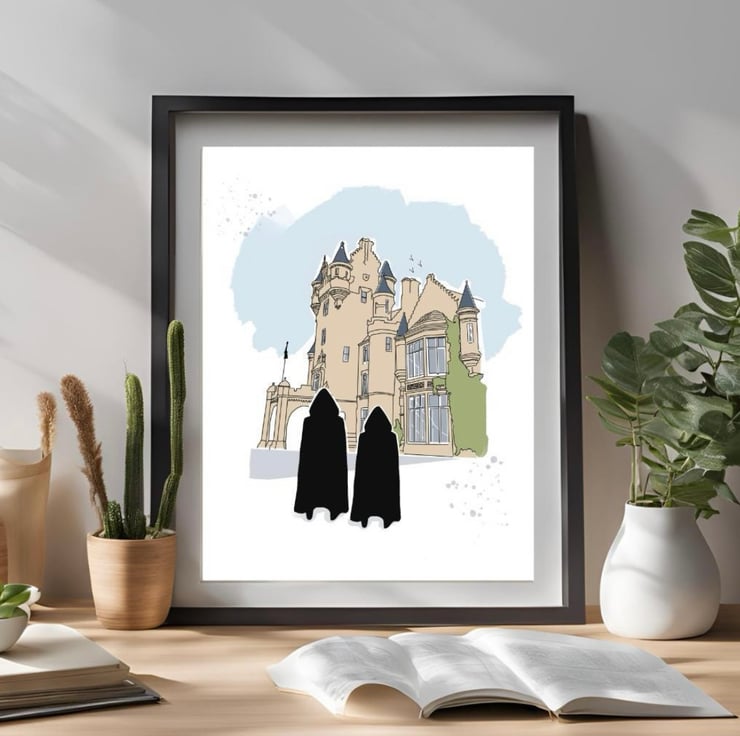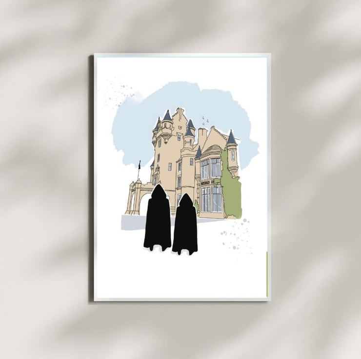 The Traitor Tv (UK) show art print. A4 print of my original artwork of Ardross Castle featuring two traitors. Printed on quality card stock. All prints are sent by free delivery in card backed envelopes