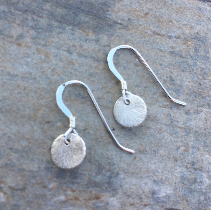Small 7mm flat sterling silver disc tags with an etched finish. Free gift box tied with ribbon,