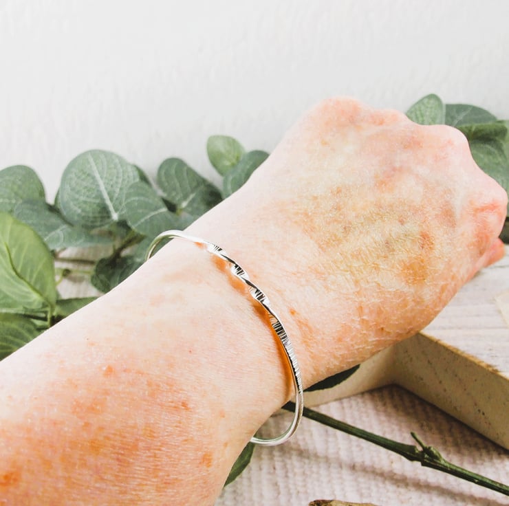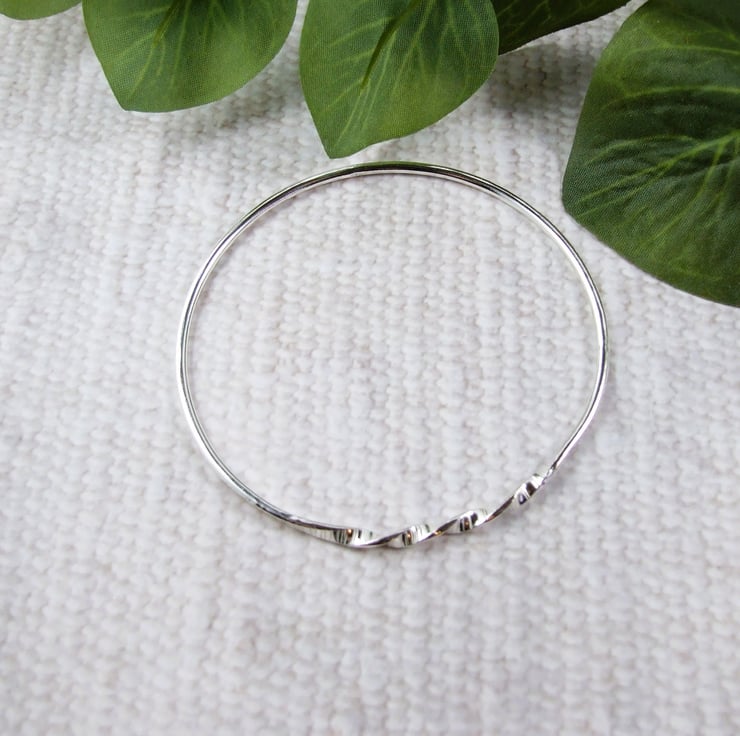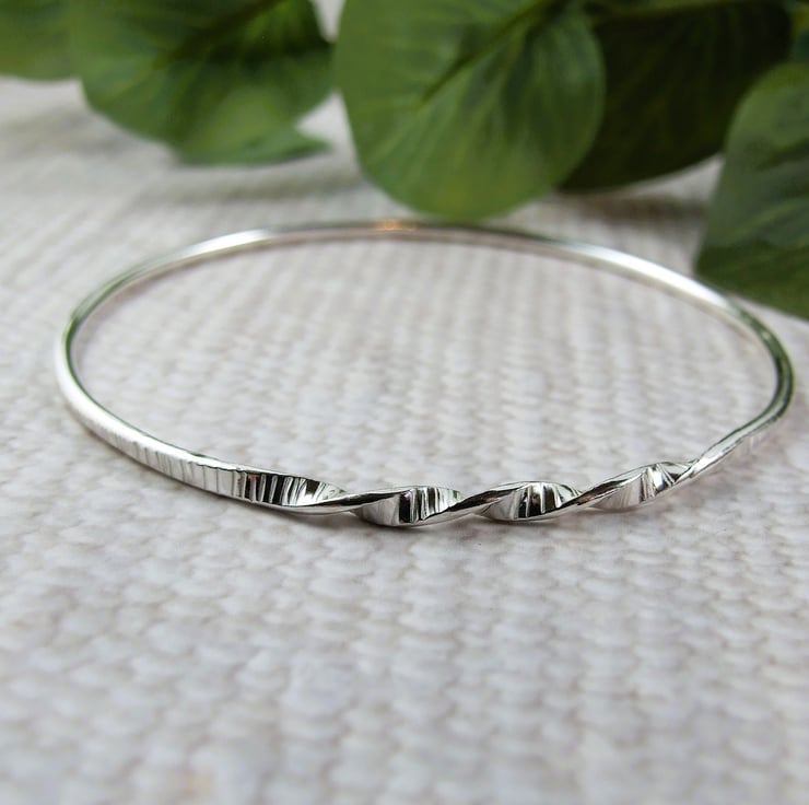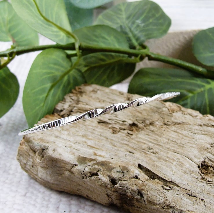 Hand forged Sterling Silver Bangle. Twist and texture design to fit size medium 20cm circumference.