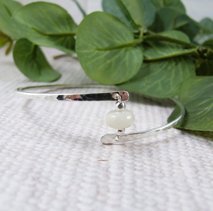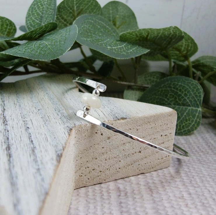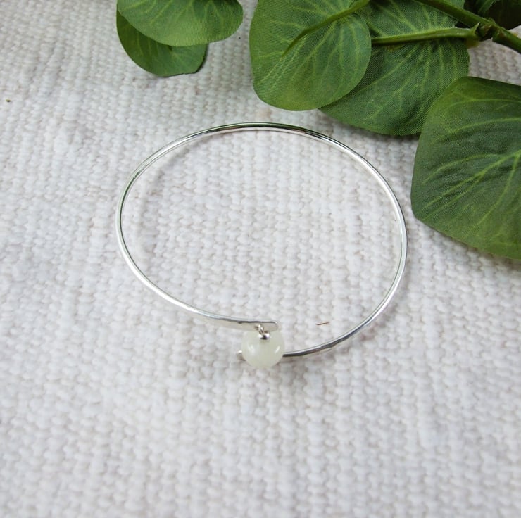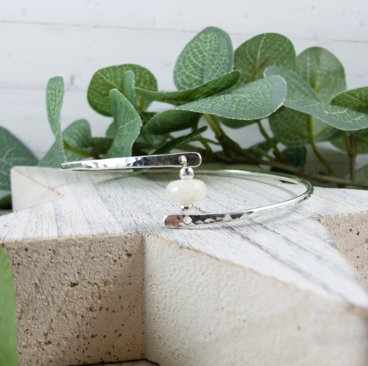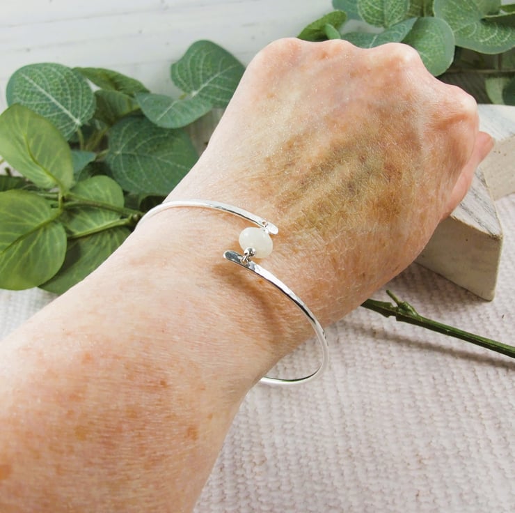Hand forged Sterling Silver Bangle with Moonstone Gemstone. Size medium 20cm circumference.