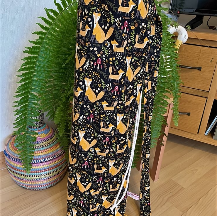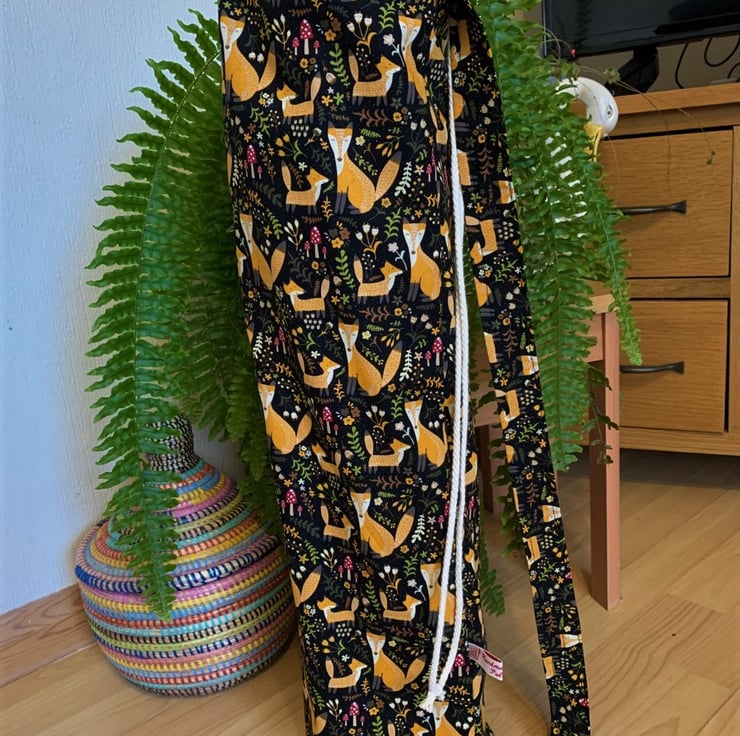 Woodland foxes print cotton reinforced straps and seams. This Yoga mat bag fits a standard 6mm 24" X 68" yoga mat,