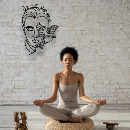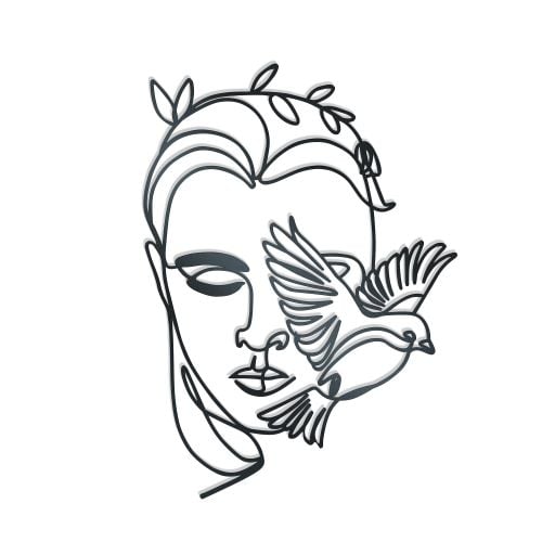 Line wall art at its very best. This Face With Bird Metal Wall Art is delicately cut and formed to create instant impact. This piece shows creativity and a thought provoking theme. Easy to hang with just a few small screws or pins.