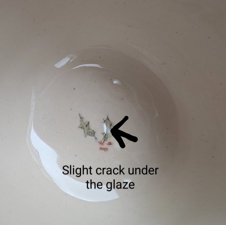 This is in the IMPERFECTLY PERFECT SALE due to a slight crack on the under base, which doesn't affect use.