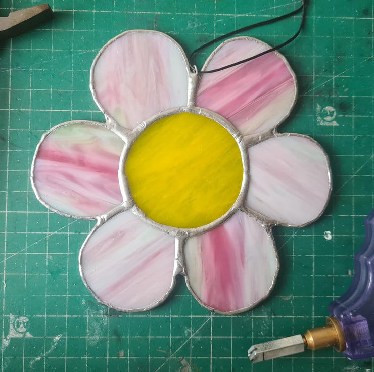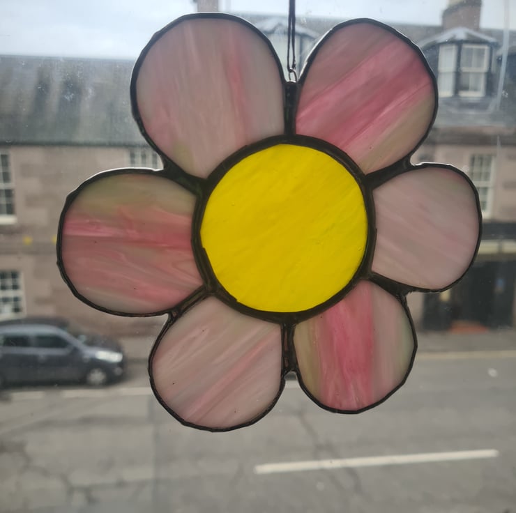 This cute pink stained glass flower measures approximately 15x15cm and is hand crafted using the Tiffany method it is delicate to look at but made to last and will enchant you for years to come! Perfect gift for someone special or to treat yourself!