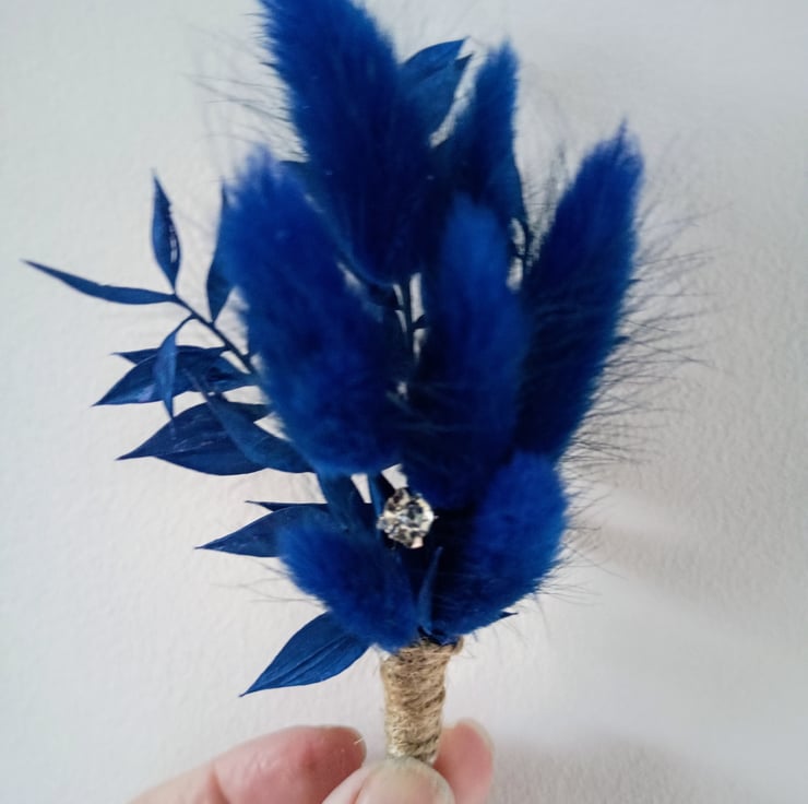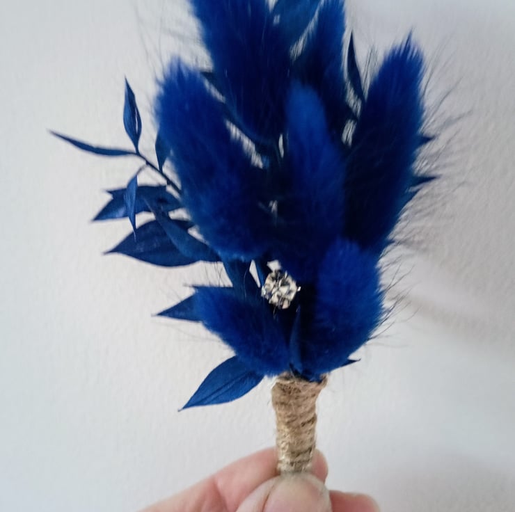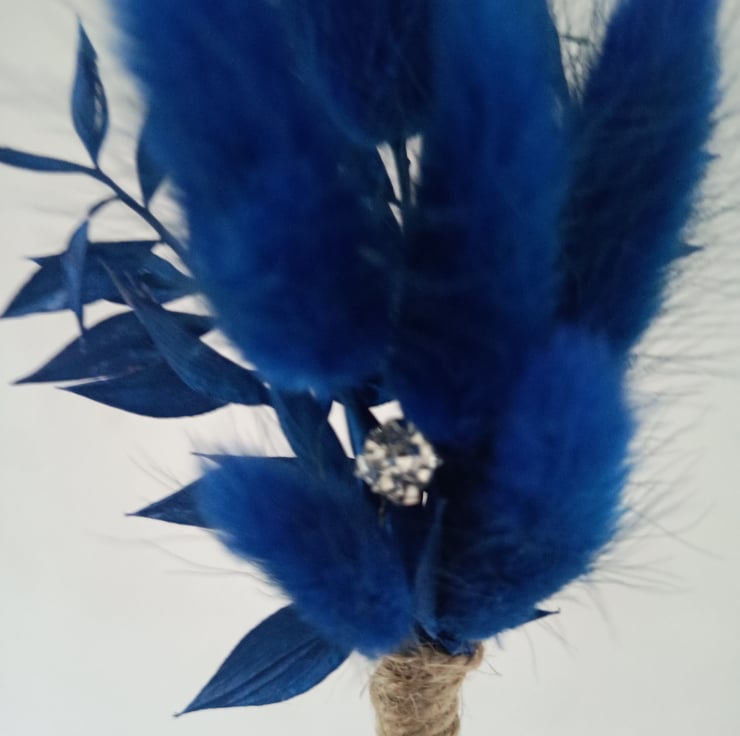 Created using soft blue Ruscus, blue bunny tails and diamantes, these can be easily removed if you dont want to sparkle.