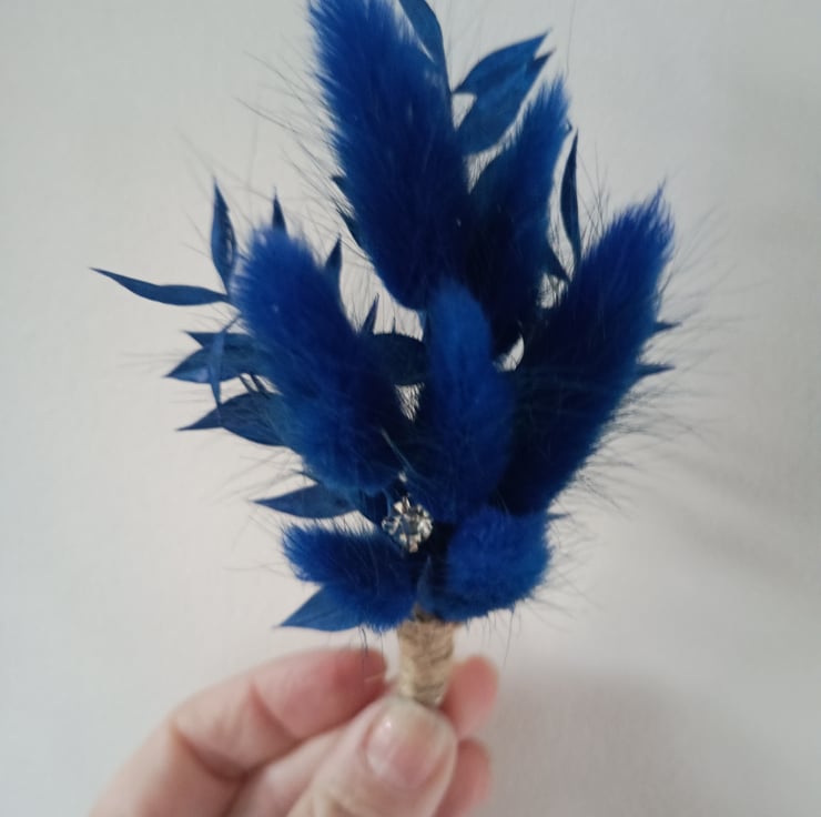 For all those blue lovers out there, this dried flower wrist corsage is just perfect. For weddings and proms.