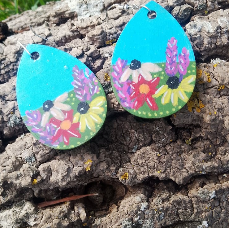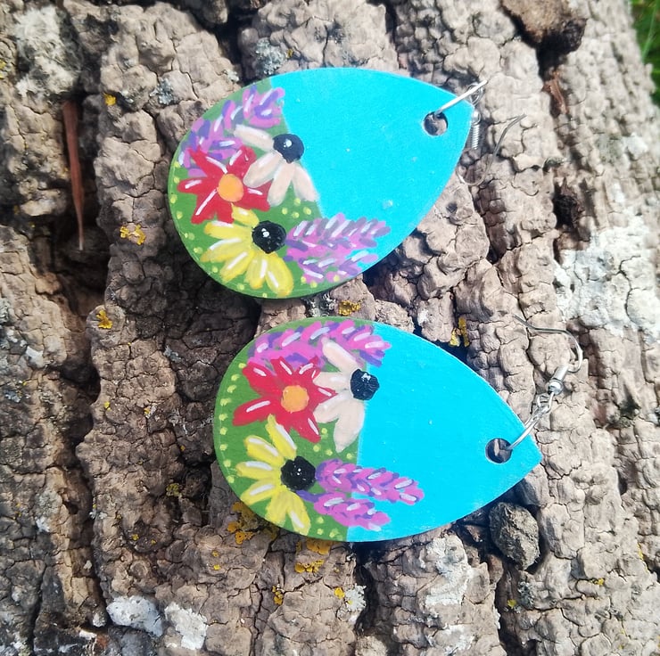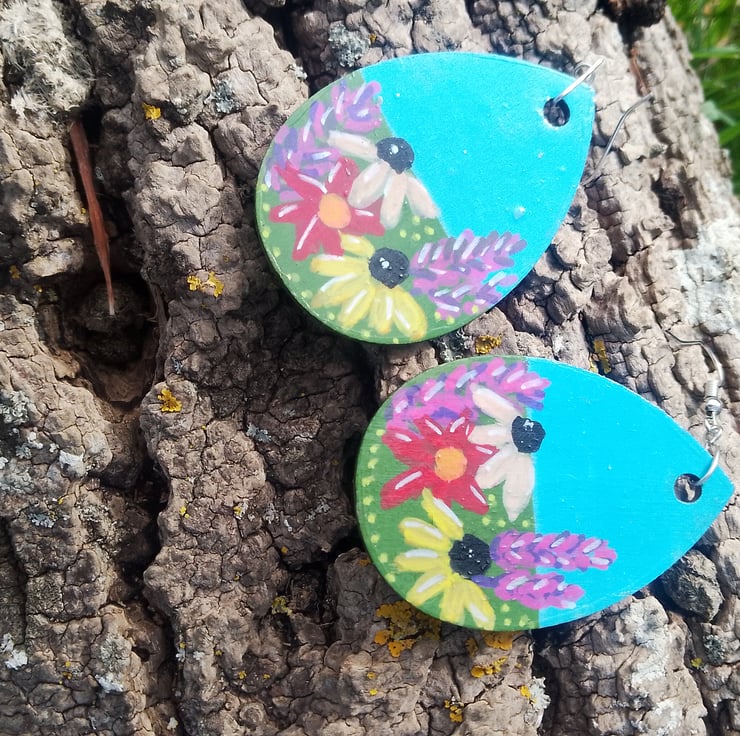 Bring floral cheer with you wherever you go with these gorgeous, one of a kind, flower meadow earrings.