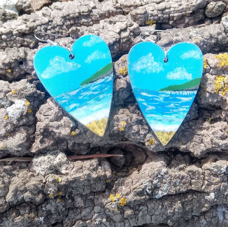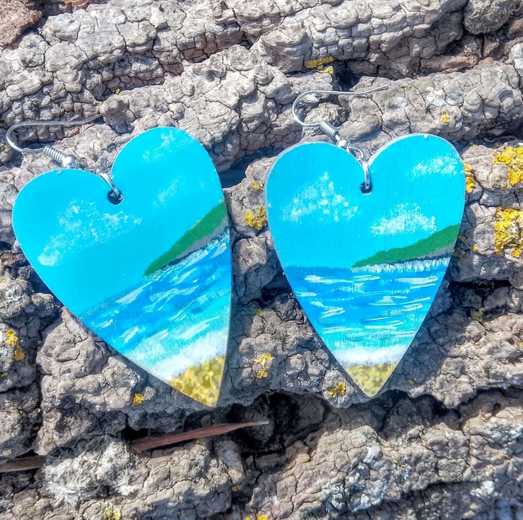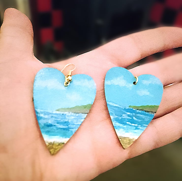 Miniature sea scene hand painted wooden earrings for all lovers of the ocean!
