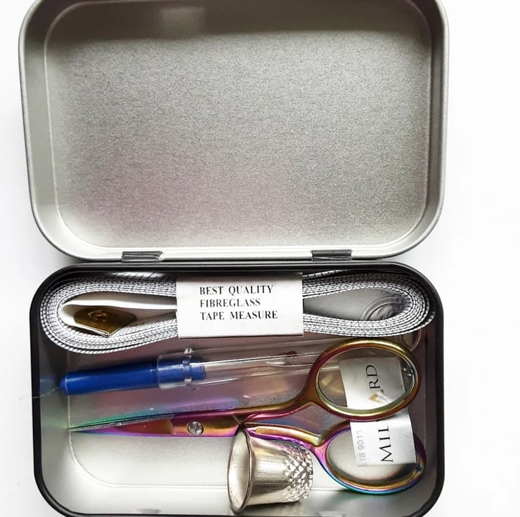 A useful travel companion which includes everything you need to sew at home and on holiday.
