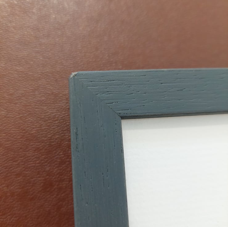 Framing: Mounted to a conservation standard (acid-free board) for long-lasting protection. The piece is framed in a stylish blue/grey wooden frame and secured behind 2mm clear float glass to keep the artwork safe from dust and damage.