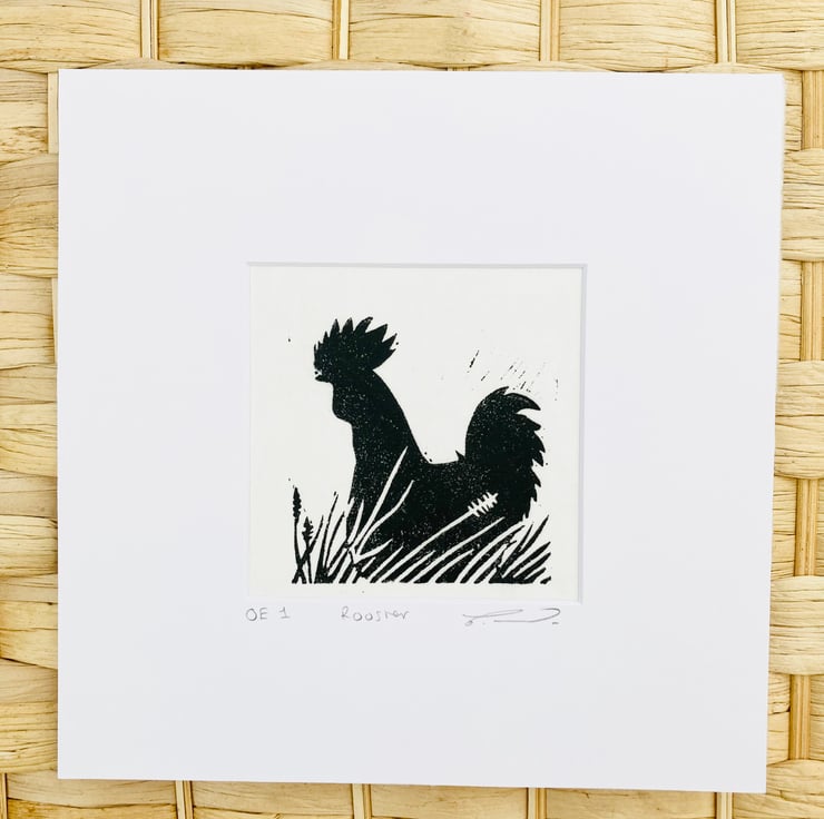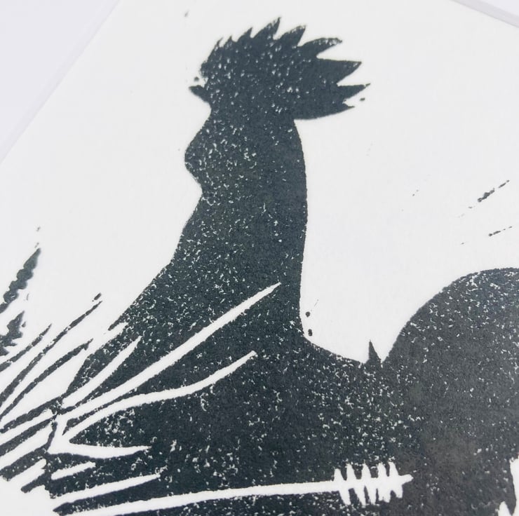 Rooster Lino print, rooster print, bird print, mini print, mini bird print
