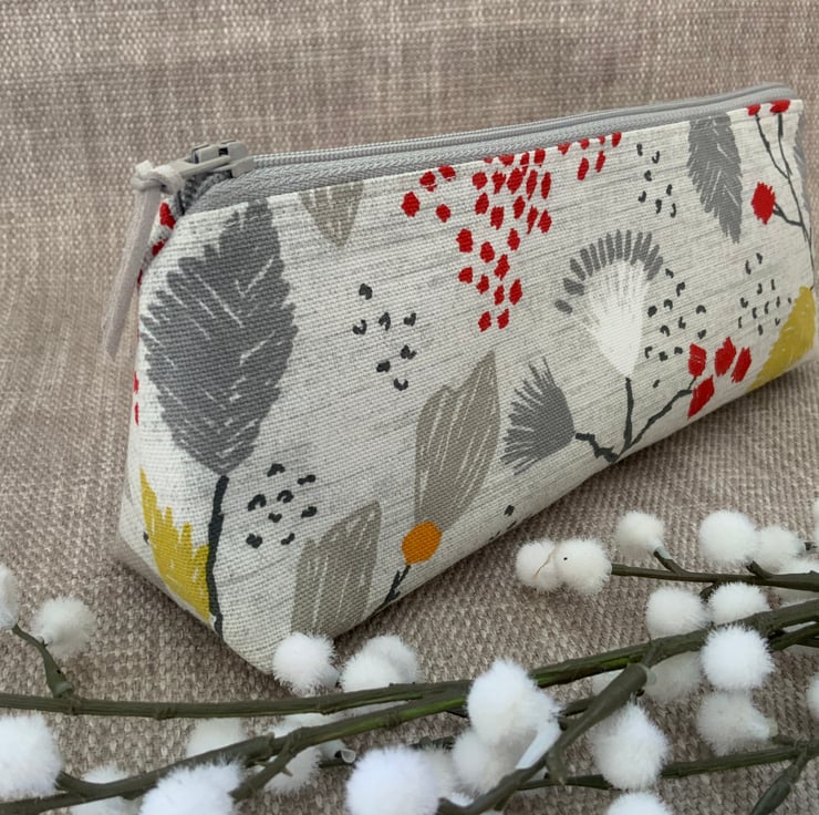 Beautiful square bottomed zipped purse, perfect as a brush case, pencil case or cosmetic bag.