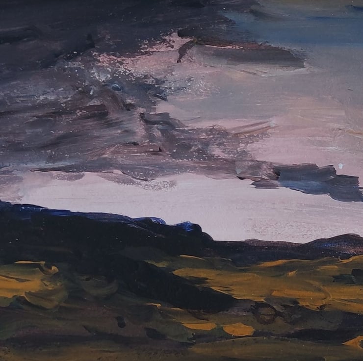 Mini Dartmoor, Sunset over a moorland hill landscape painting