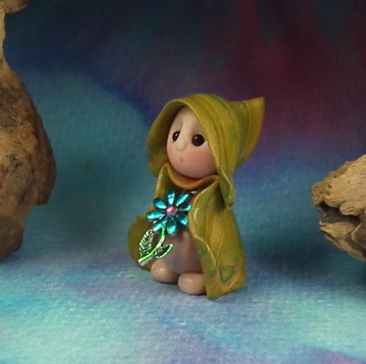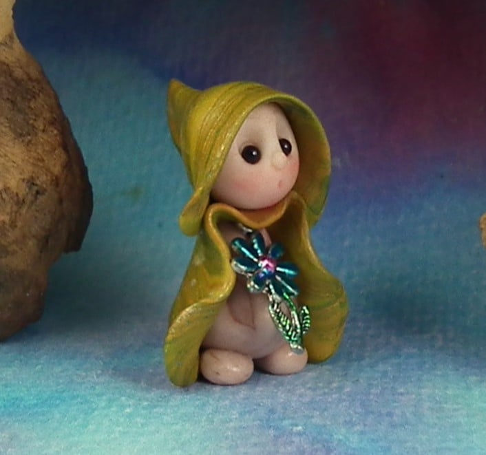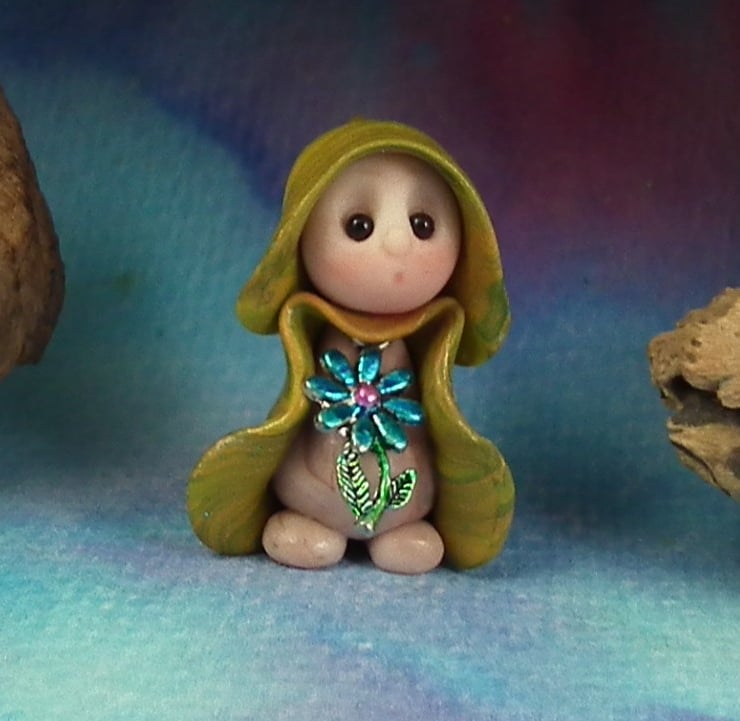 This is a 'one of a kind' creation having been entirely handmade without the use of moulds here at my studio on the Sussex Coast. Modelled with artist blend polymers, blushed before sealing with lacquer, Dorie has sparkling black onyx eyes and garden robes. Dorie the Garden Gnome is just one and a quarter inches tall.