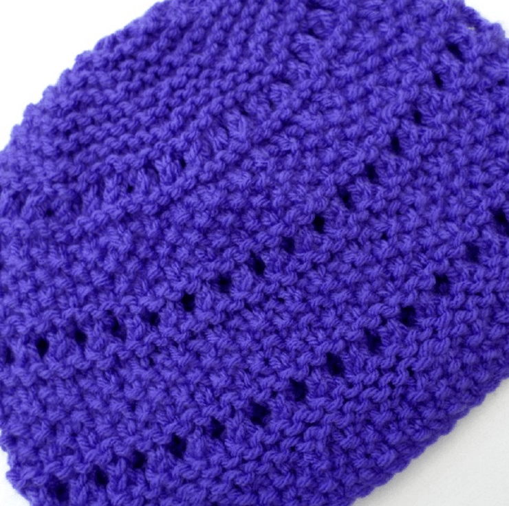 To fit: child (adult). Circumference: 50 (58) cm; 20 (23) inches. Slouchy Fit. The hat is knitted using chunky yarn and 6 mm knitting needles. The hat is knit flat and seamed.