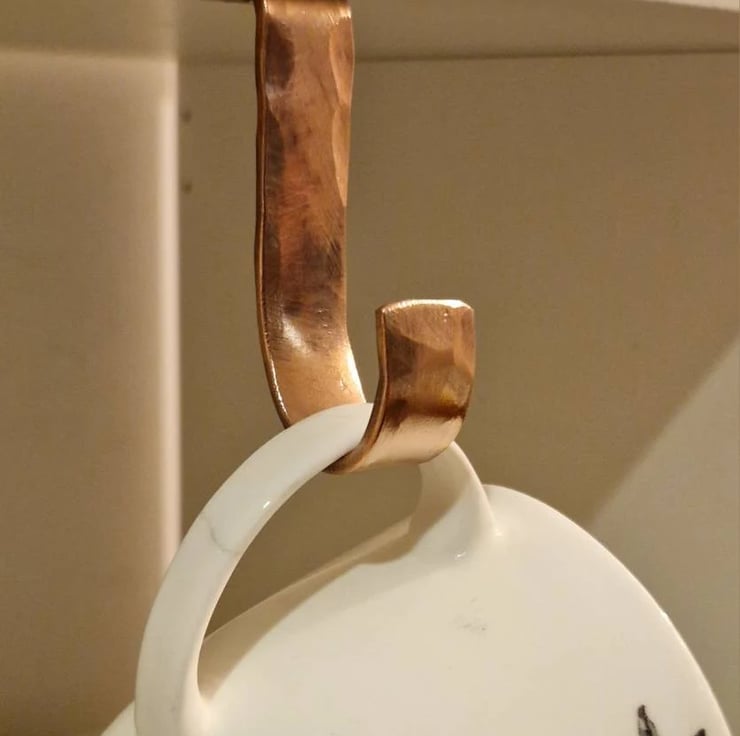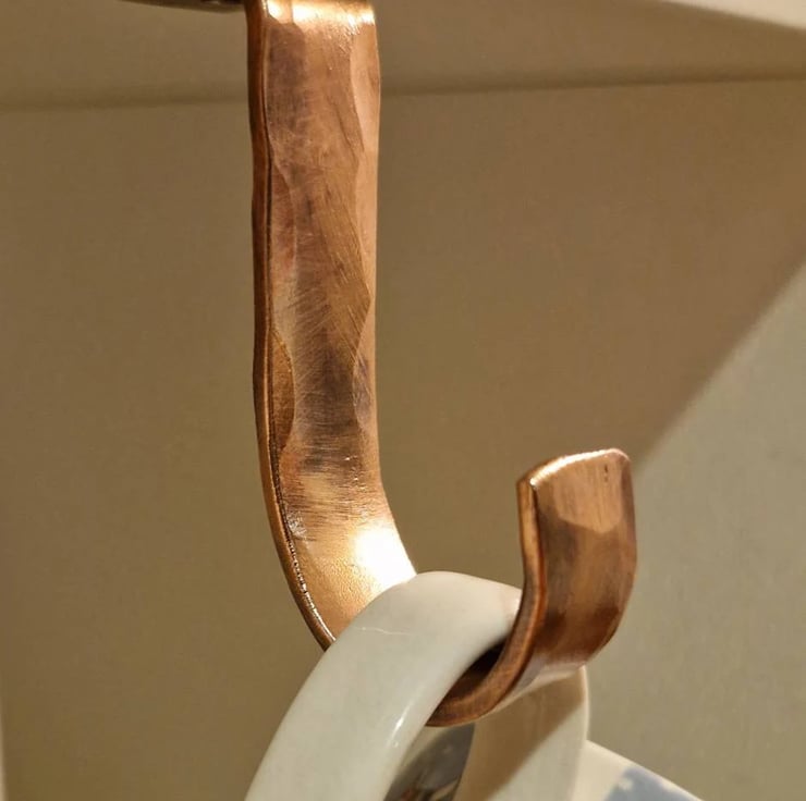 We are proud to offer our forged undercounter holders made from the highest grade flat copper bar with each hook being individually hand crafted and textured over the anvil with care to create a stylish and practical under counter hook. Bursting with charm and hand made appeal!