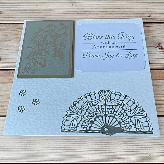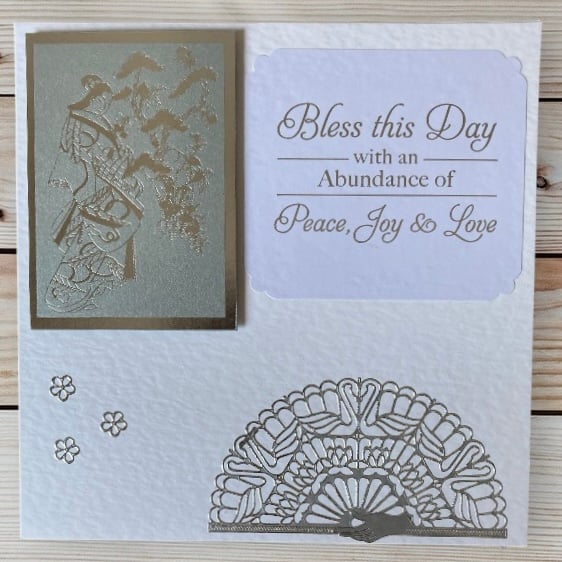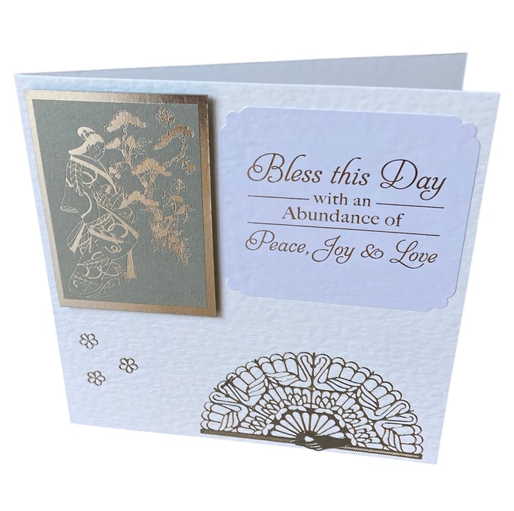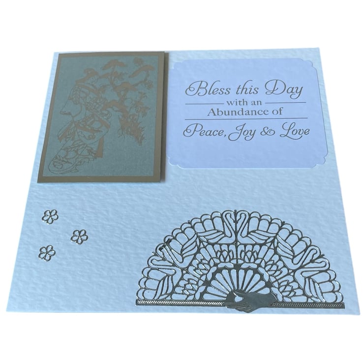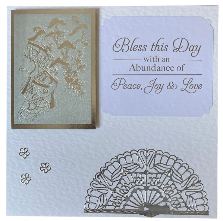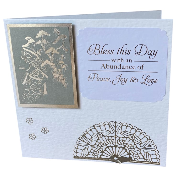 This beautiful Japanese inspired greeting card features an elegant design in silver.