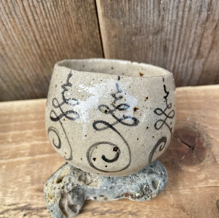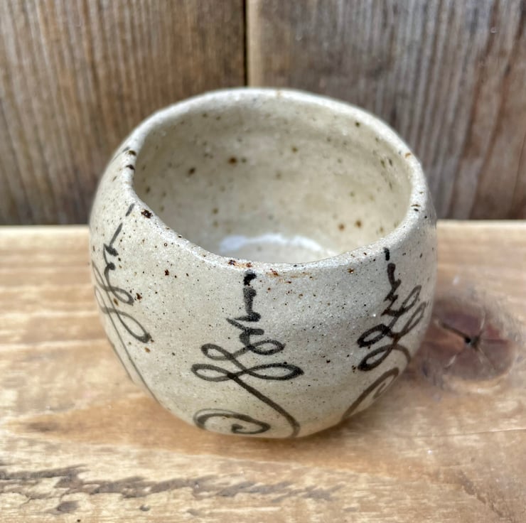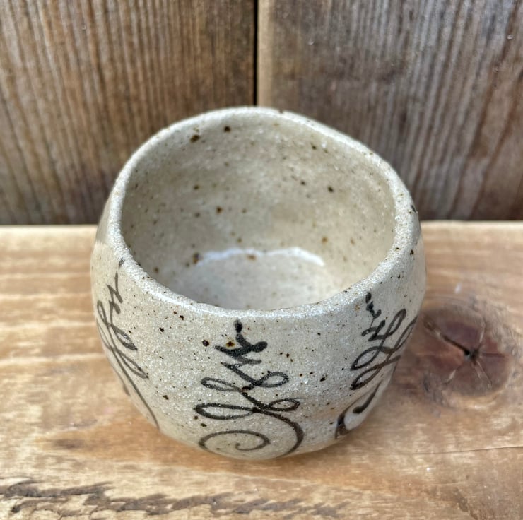 Small handleless cup or tumbler formed using the Kurinuki technique of carving and hollowing from a single block of clay.