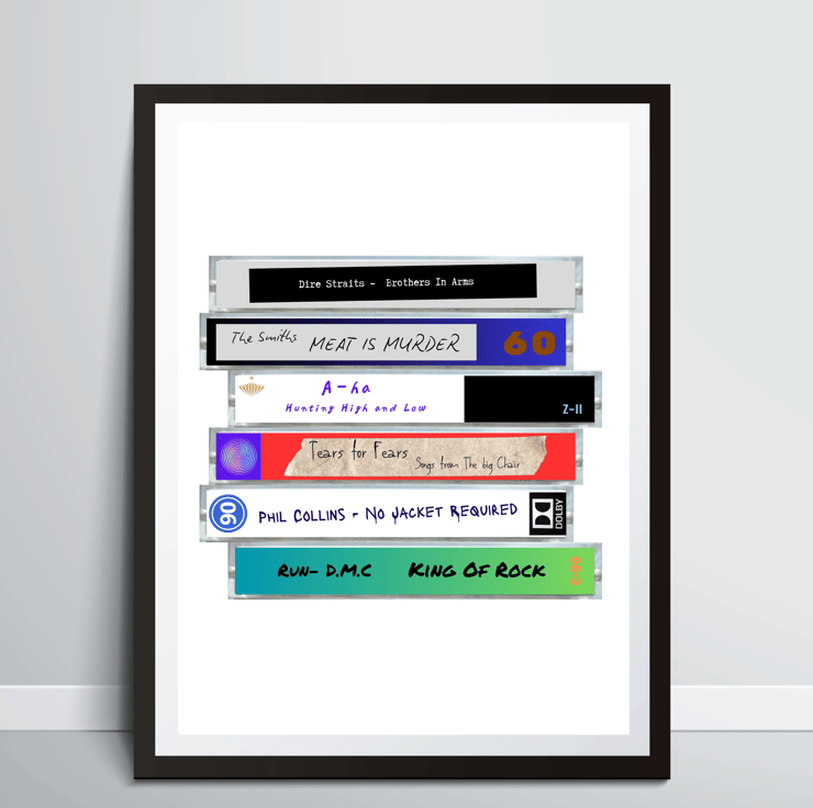 Celebrate your love for music with this A4 unique illustrated cassette tape poster from 1985!