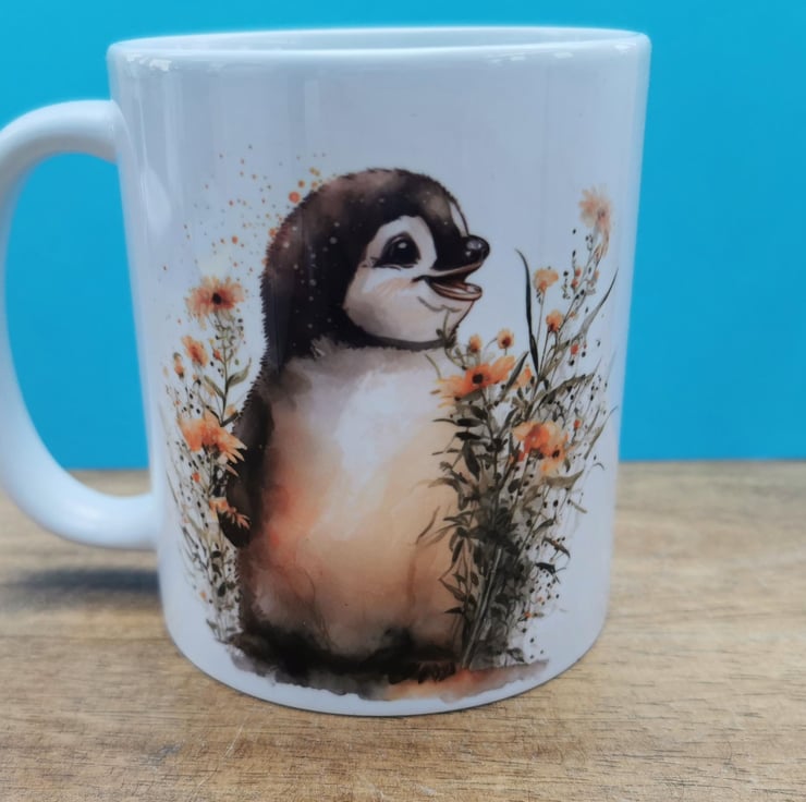The image of a happy penguin has been printed onto a 12-ounce mug. It would make a wonderful inexpensive gift for any occasion.