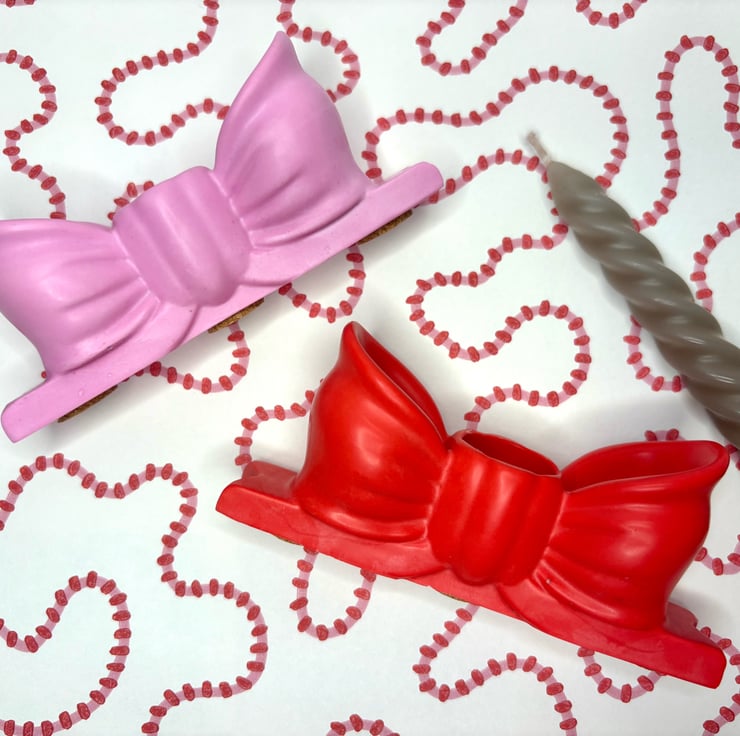 Ribbon Bow Candlestick Holder designed and handmade by interior designer Kelly.