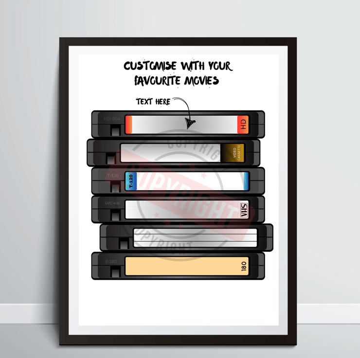 Bring the magic of movies to your space with an unique illustrated VHS tape poster!