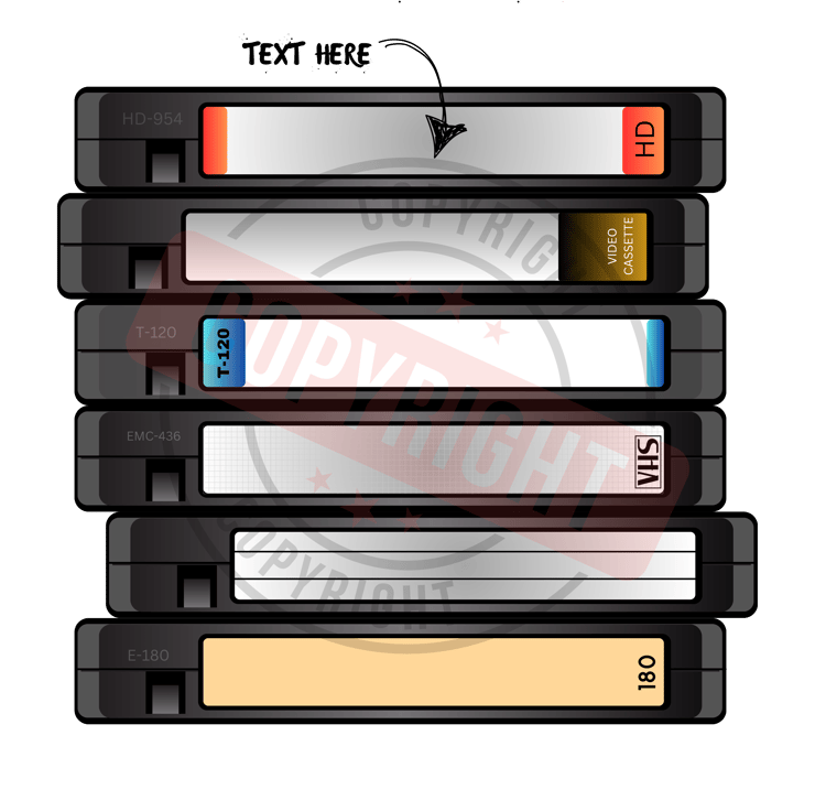 Designed for film lovers and collectors, this nostalgic artwork features a stylish arrangement of classic VHS tapes.