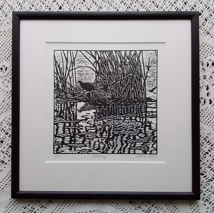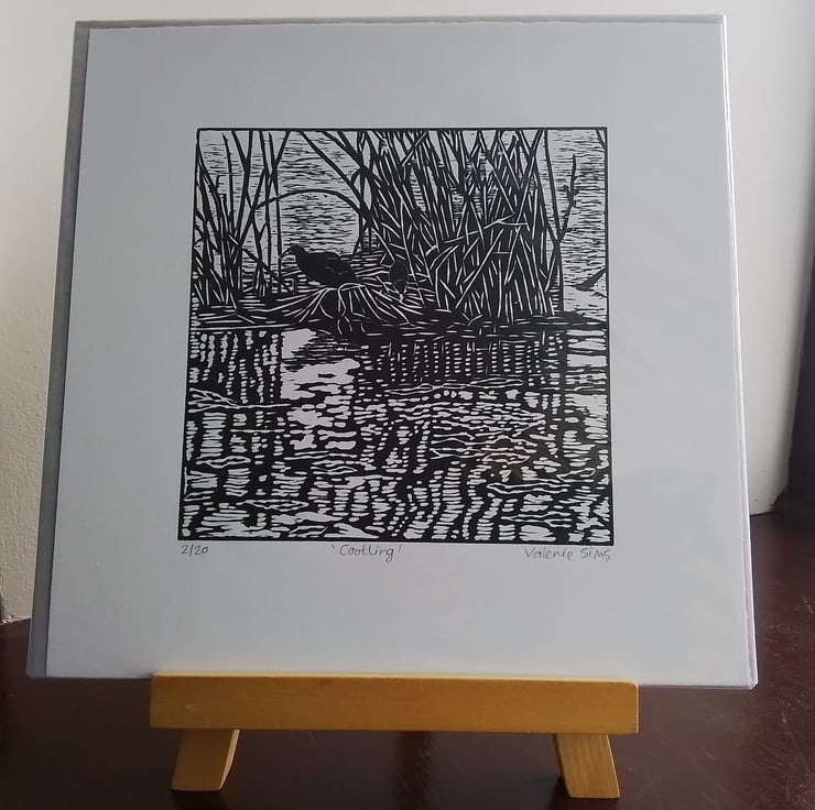 Woodcuts are sold unframed and without a mount, and sent in a card-backed clear protective sleeve, packaged with more cardboard