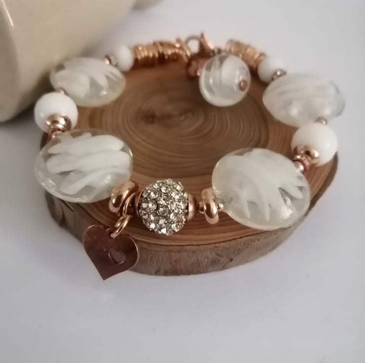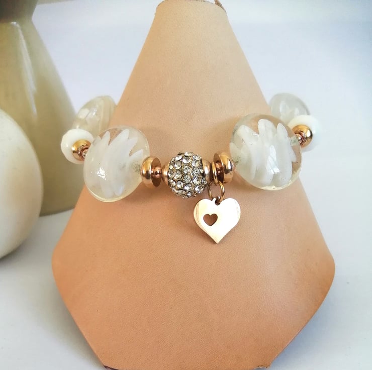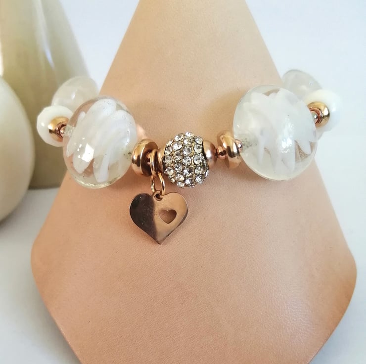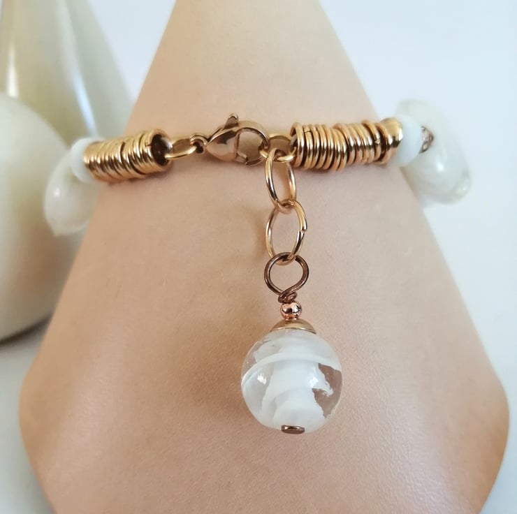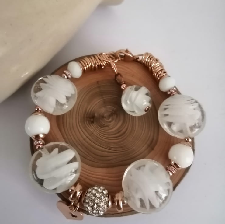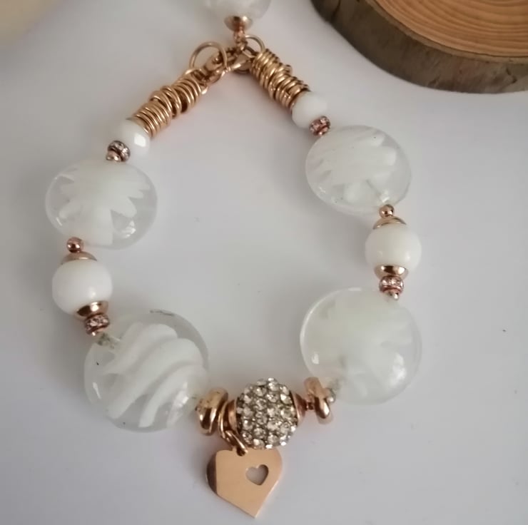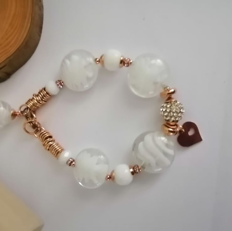 Perfectly Imperfect white and rose gold beaded lamp work bracelet