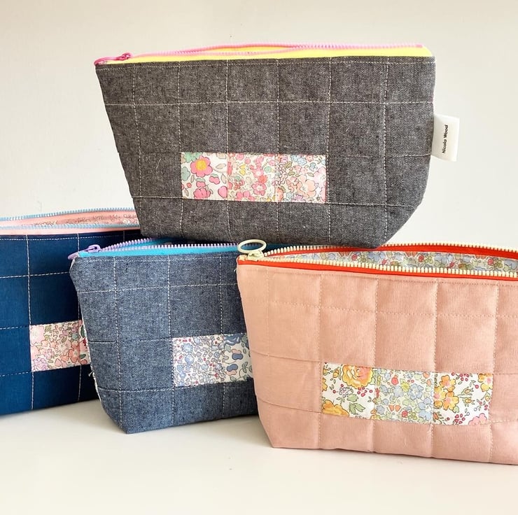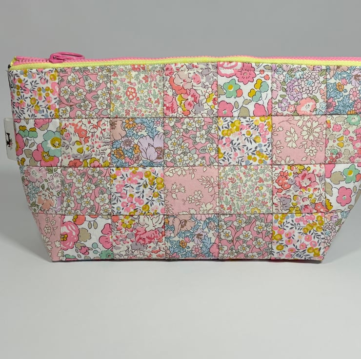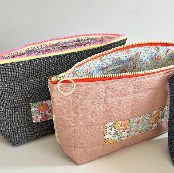 This pretty zip pouch is made using a patchwork of Liberty print tana lawn and contrasting linen.