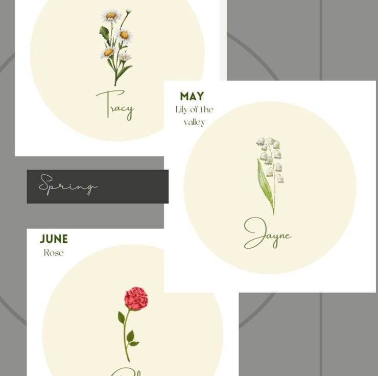 Choose the month of the flower you would like from the drop-down menu. After placing your order send me a message/email with the name and/or birth date.