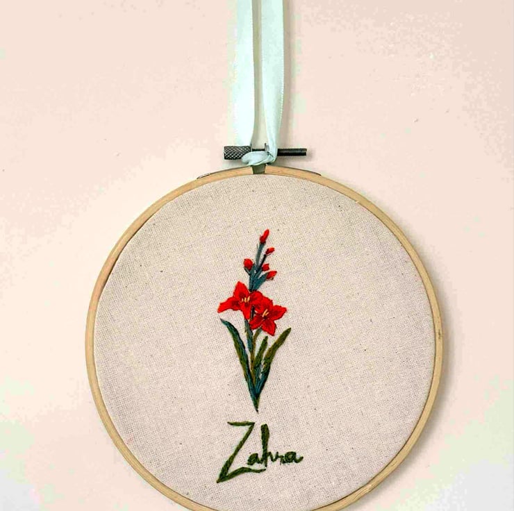 This hand-embroidered personalised birthday flower gift is a timeless and heartfelt keepsake, crafted with care to celebrate a special day. Featuring delicate floral embroidery, each piece is custom designed with the recipient's name, birth flower and an optional meaningful details such as birthdate or a short handwritten message included in the gift wrap.