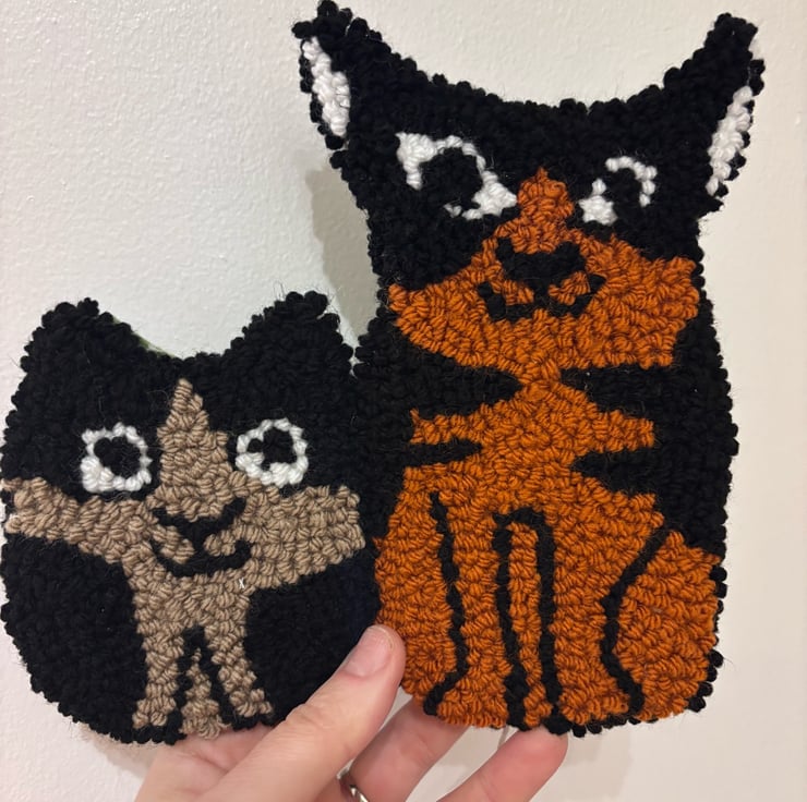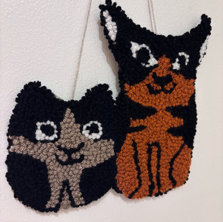 Funky silly cats punch needle wall hanging. Perfect for kitchen, living room or your kids bedroom.