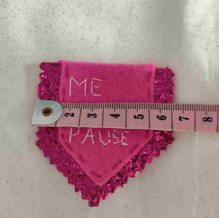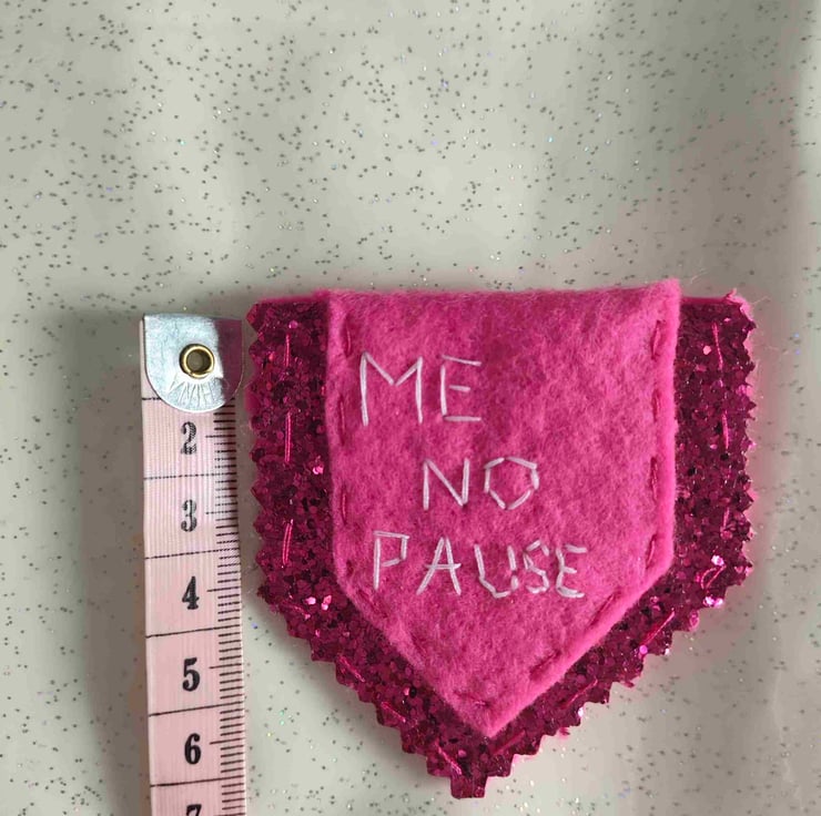 The badge measures 6.5cm across and 6.5cm from top to bottom