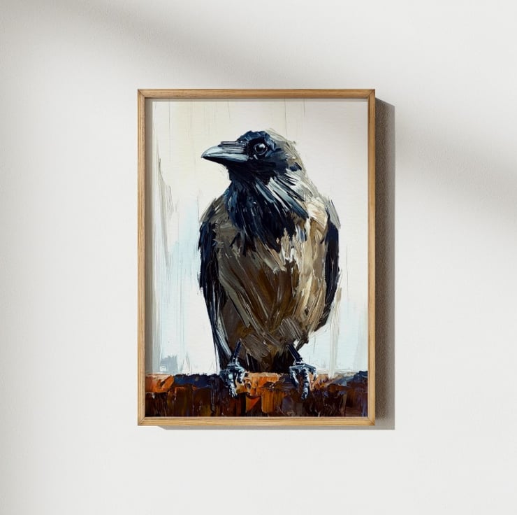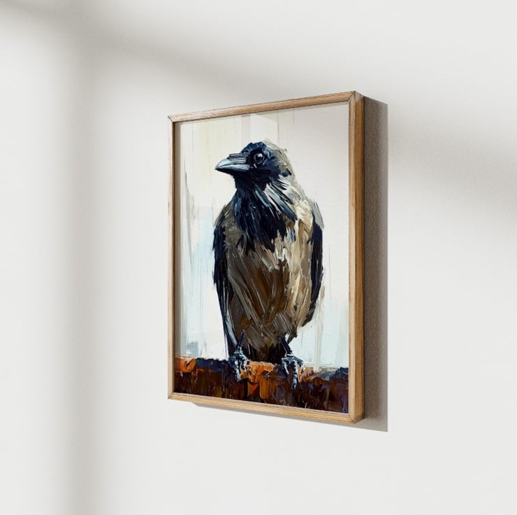 Ultimately, this piece is perfect for wildlife lovers, gothic art enthusiasts, or anyone who appreciates the deep symbolism of crows. Whether displayed in a home, office, or gallery, Expressive Crow blends mystery, power, and beauty into a bold and timeless work of art.
