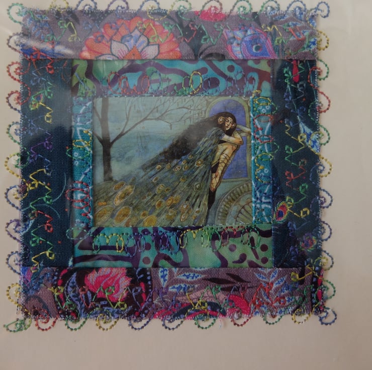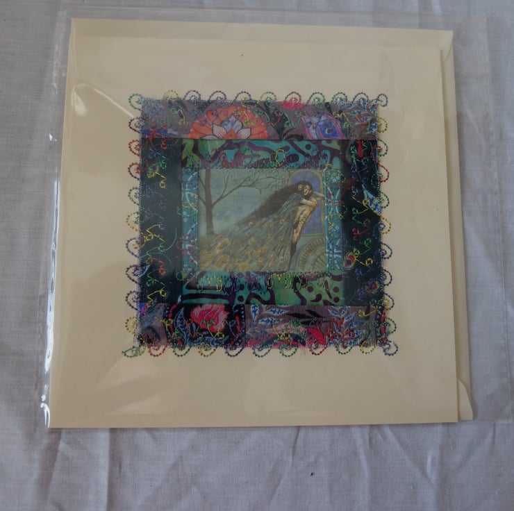 Artwork from collectable cards made into greetings card, Cloak of feathers