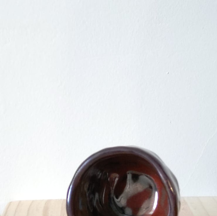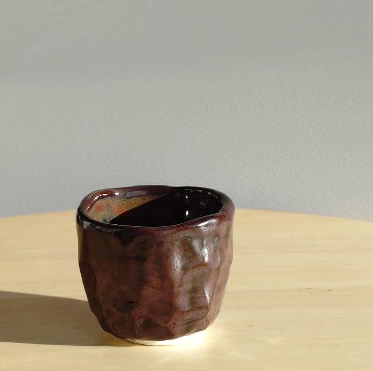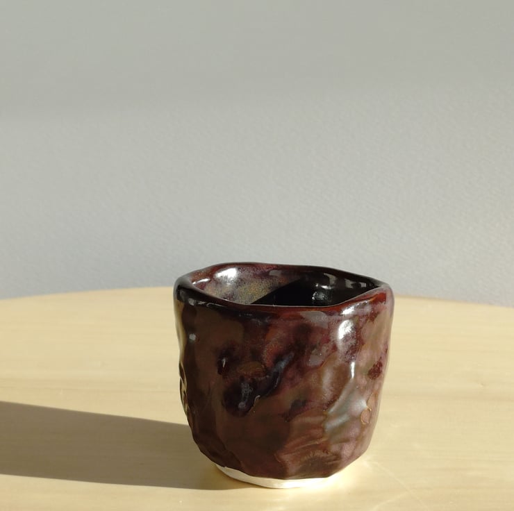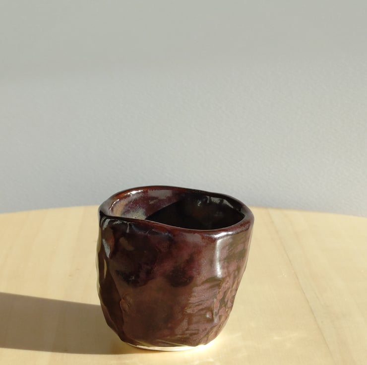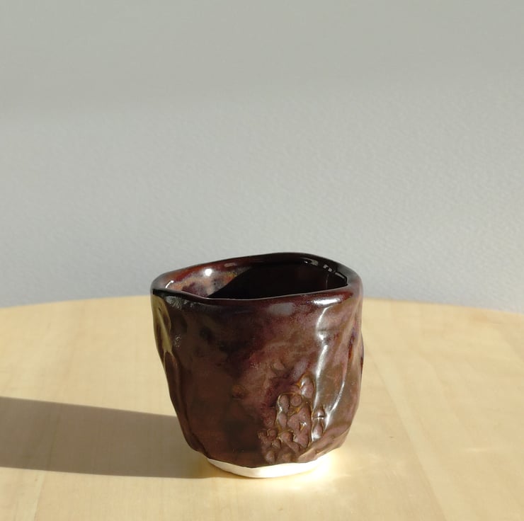 "Shibumurasaki", 'shibu' means stringent, deep, aged, or subdued, is often used for rich, earthy colours like brown, while 'murasaki' means purple. This name describes the main colour of this cup.