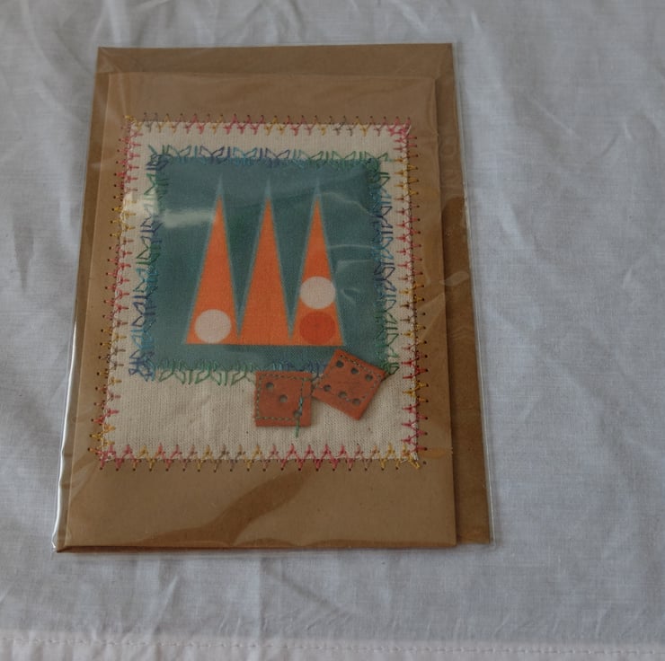 backgammon themed greetings card, hand made