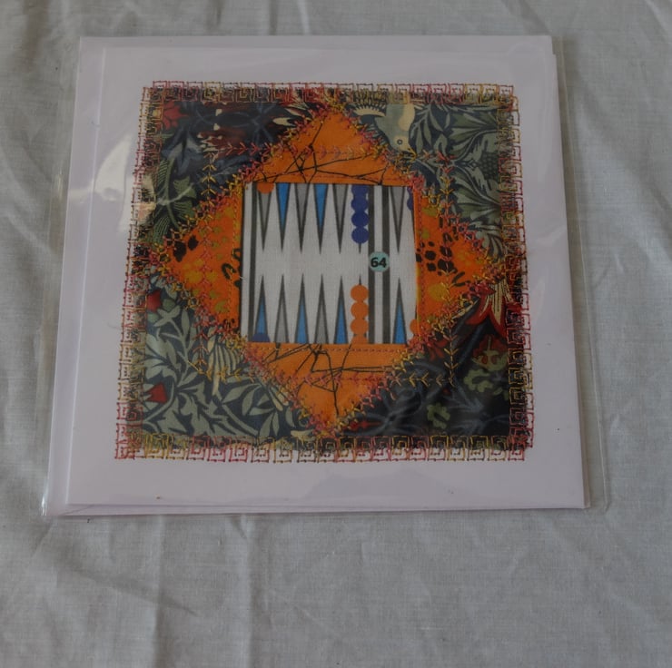I am using up a range of unused quilt blocks, unfinished embroideries and various bits of ribbon and fabric to make a range of greetings cards.