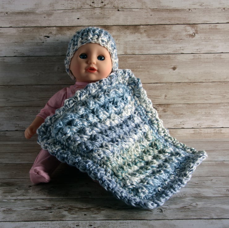 Crochet Doll Blanket and Hat, Handmade Doll Blanket and hat, Nap, Snuggle time