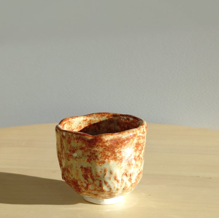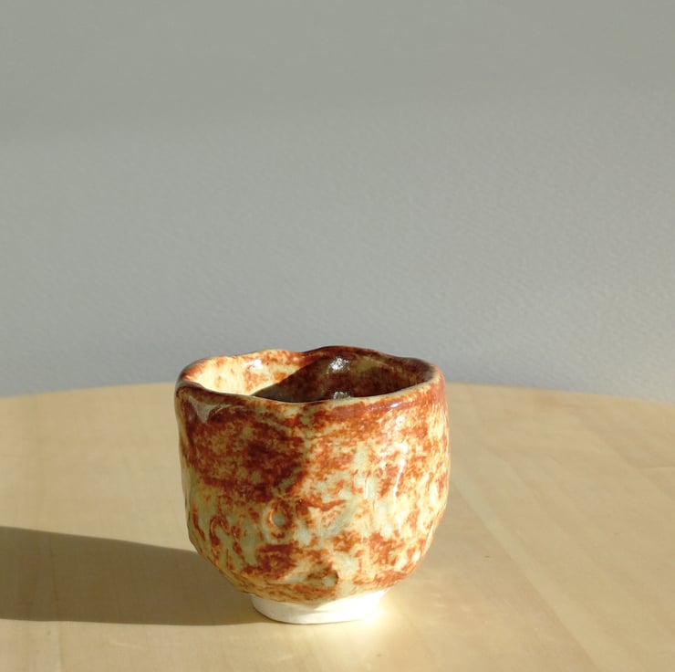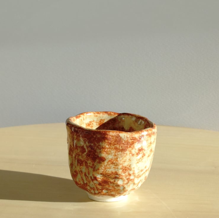 "Akebono" , which means "dawn" in Japanese. The warm reddish-brown and creamy tones resemble the soft colours of sunrise, and the rustic, handmade texture adds to its natural charm.