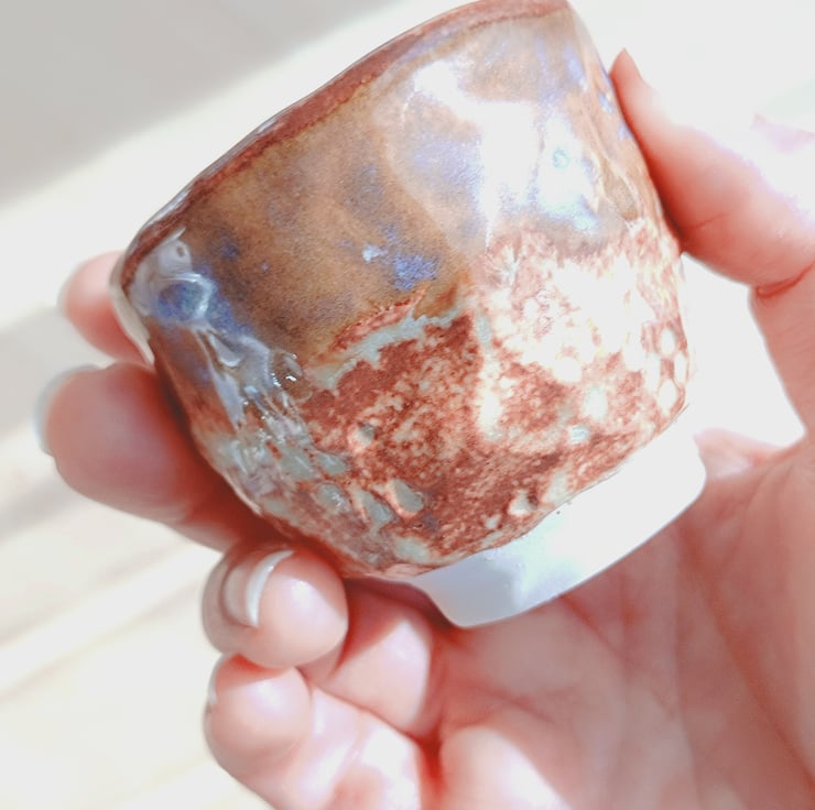 "Kohaku", which means "amber" in Japanese. The rich blend of warm brown, golden, and creamy tones resembles the depth and warmth of amber, perfectly matching its organic glaze and rustic charm.