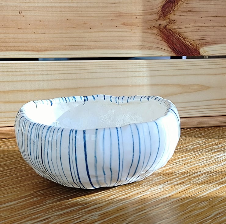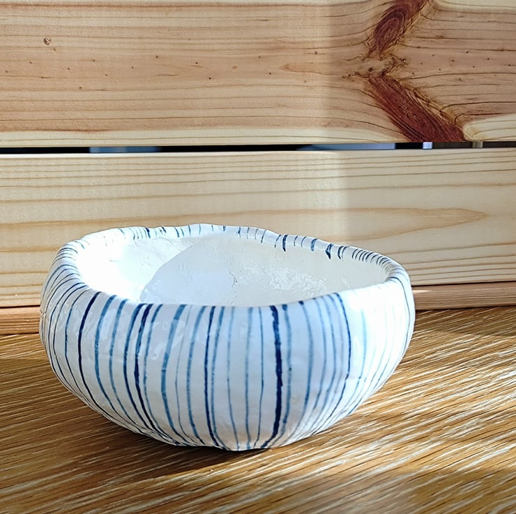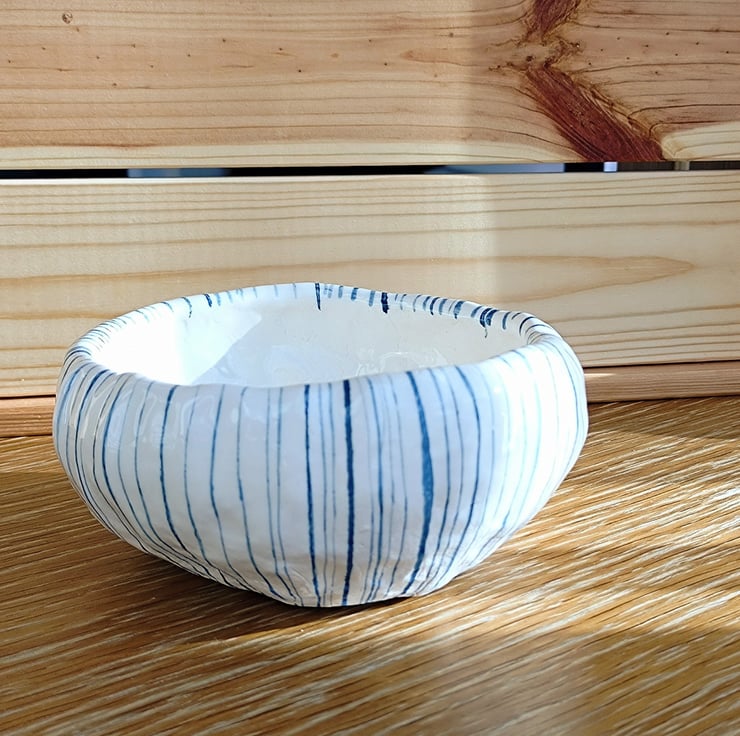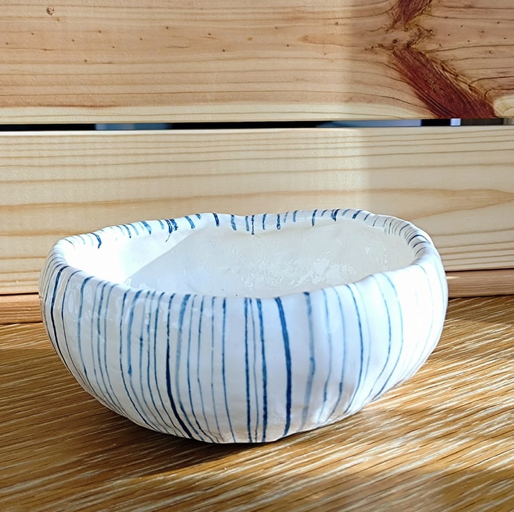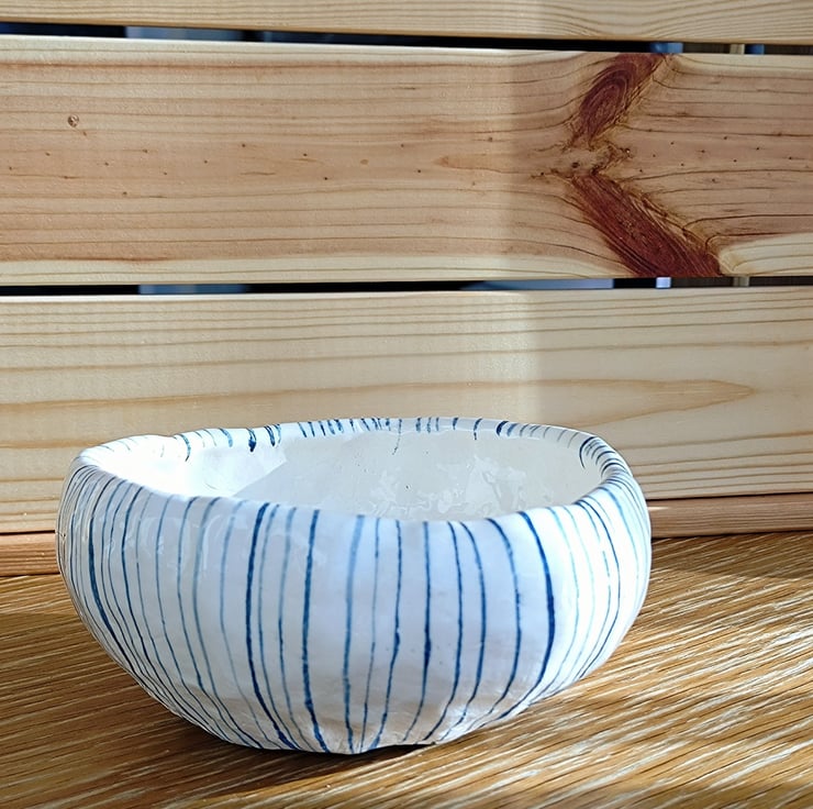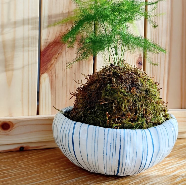 With its soft, swirling stripes, this lovely pot reminds me of a misty morning on the riverbank. It's the perfect size for herbs and small flowering plants, and its gentle colours will complement any décor.