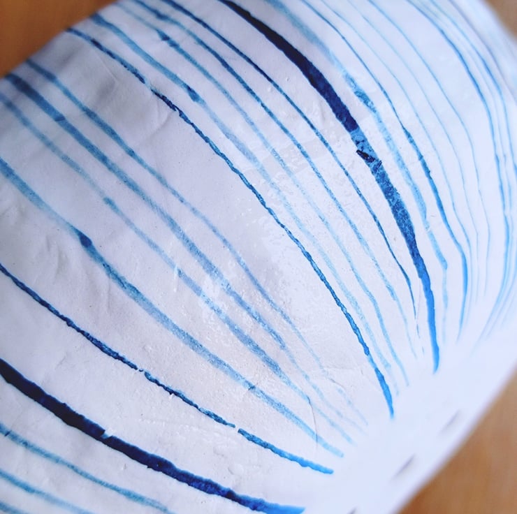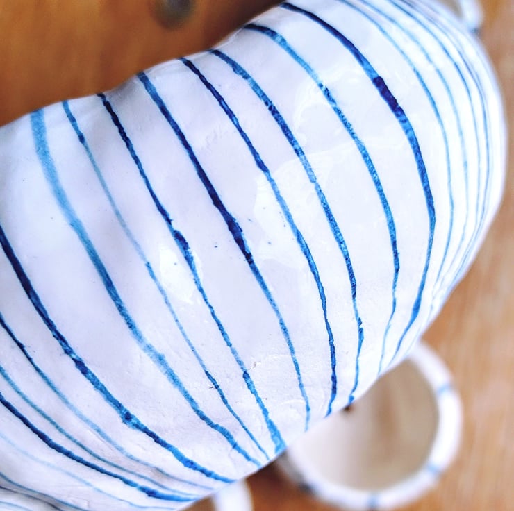 The colour of my underglaze. I was thinking of a design that can showcase the beauty of the glaze when combined with the painting technique I use. This collection is just so right for that.