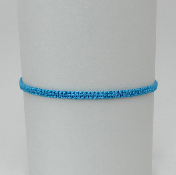 This Bermuda blue macramé designed bracelet is handmade in Cornwall with quality nylon cord from the USA. The adjustable sizing 7”to 9.5” means it fits comfortably and it easy to slip over your hand. The silver plated bead ends not only add a touch of elegance but also make it easy to fasten the bracelet yourself.